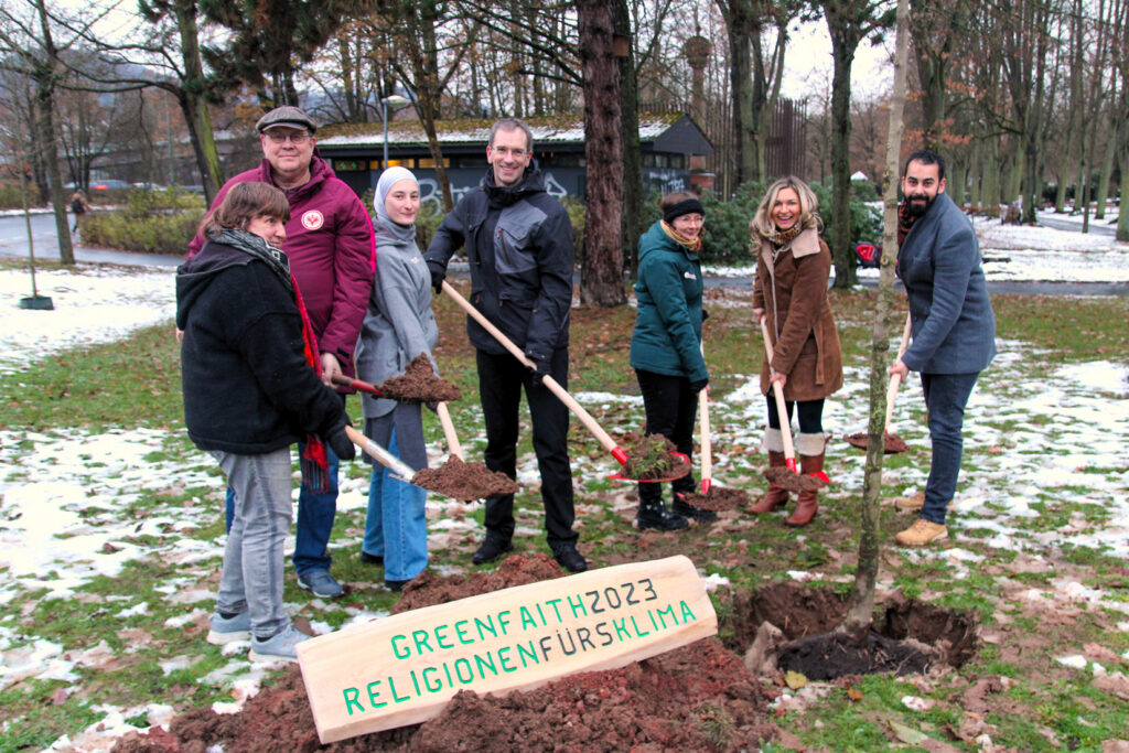 A similar event took place in the school park on December 5, 2023. A magnolia was planted at that time – a tree that is particularly well adapted to the changing climate in Germany. The planting was accompanied by musical performances, poetry, and speeches emphasizing the interreligious symbol of protecting our planet. In addition to city representatives, members of Jewish, Christian, Muslim, and Baha’i communities also participated.