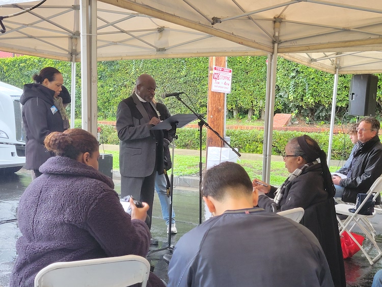 GreenFaith partnered with STAND LA to hold a teach-in on January 14, 2023, to build community power and share about the dangers of neighborhood oil and gas drilling. The teach-in was held on a street in front of the Murphy Drill Site and was attended by over 70 people despite the pouring rain. The event was an opportunity for frontline communities to connect with faith communities and organizations, families, and young adults. We heard stories from nearby residents, researchers, and scientists about the number of safety violations and health impacts at the drill site.