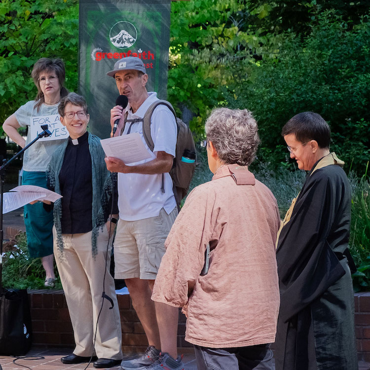 Special thanks to Domyo Burk, a Soto Zen Buddhist Priest, lead teacher of Bright Way Zen, and to Leah Jay for the creation of GreenFaith Wy’east along with their inaugural interfaith service.